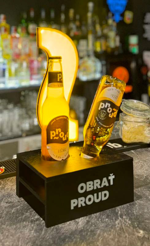 Ein Präsenter für das Bier „Proud“, der auf fesselnde Weise modernes Design mit einem interaktiven Element verbindet.