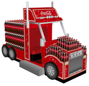 During the design phase, maximum emphasis was placed on creating a display that serves as a highly faithful replica of the actual Coca-Cola truck. By using a combination of cardboard and sturdy honeycomb board, we achieved a realistic 3D structure that stands out in the retail environment and creates a powerful emotional connection with the brand’s long-standing holiday tradition.