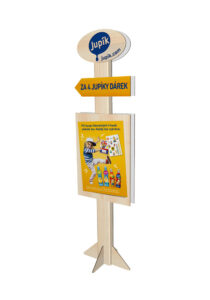 Áčka (A-poutače), závěsné POS prvky, shelf stoppery, kartonové dekorace, stojky, totemy (čočky) nebo celé vstupní brány umístěné na správném místě mají velmi vysokou míru upoutání pozornosti. Mohou sloužit jako navigace, vizuální kotva pro konkrétní zónu na prodejně nebo jako silný nosič kampaně přímo u regálu.