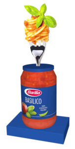 Chutná rajčata, pěstovaná na sluncem zalitých italských polích, a aromatická bazalka. Basilico Barilla, připravená tradičně bez přídavku konzervačních látek, je nejklasičtější čerstvá a originální omáčka. Tato „chutná“ maketa byla součástí Shop in Shop Barilla a hlavním cílem vystavení bylo upoutání pozornosti na prodejní ploše, vyvolání pozitivních chuťových emocí u nakupujících, a samozřejmě následný nákup produktu.